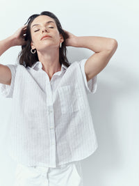 Cette chemise en tissu léger et confortable allie à la fois simplicité et élégance. Les petits ourlets sur les manches et les plis au dos apportent une touche raffinée à ce modèle classique.