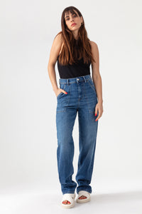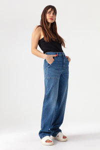 Explorez le jean Hope, une pièce baggy dotée de poches plaquées et des jambes longues et amples. Mettez en valeur votre style avec sa taille haute pour une allure moderne et confortable.